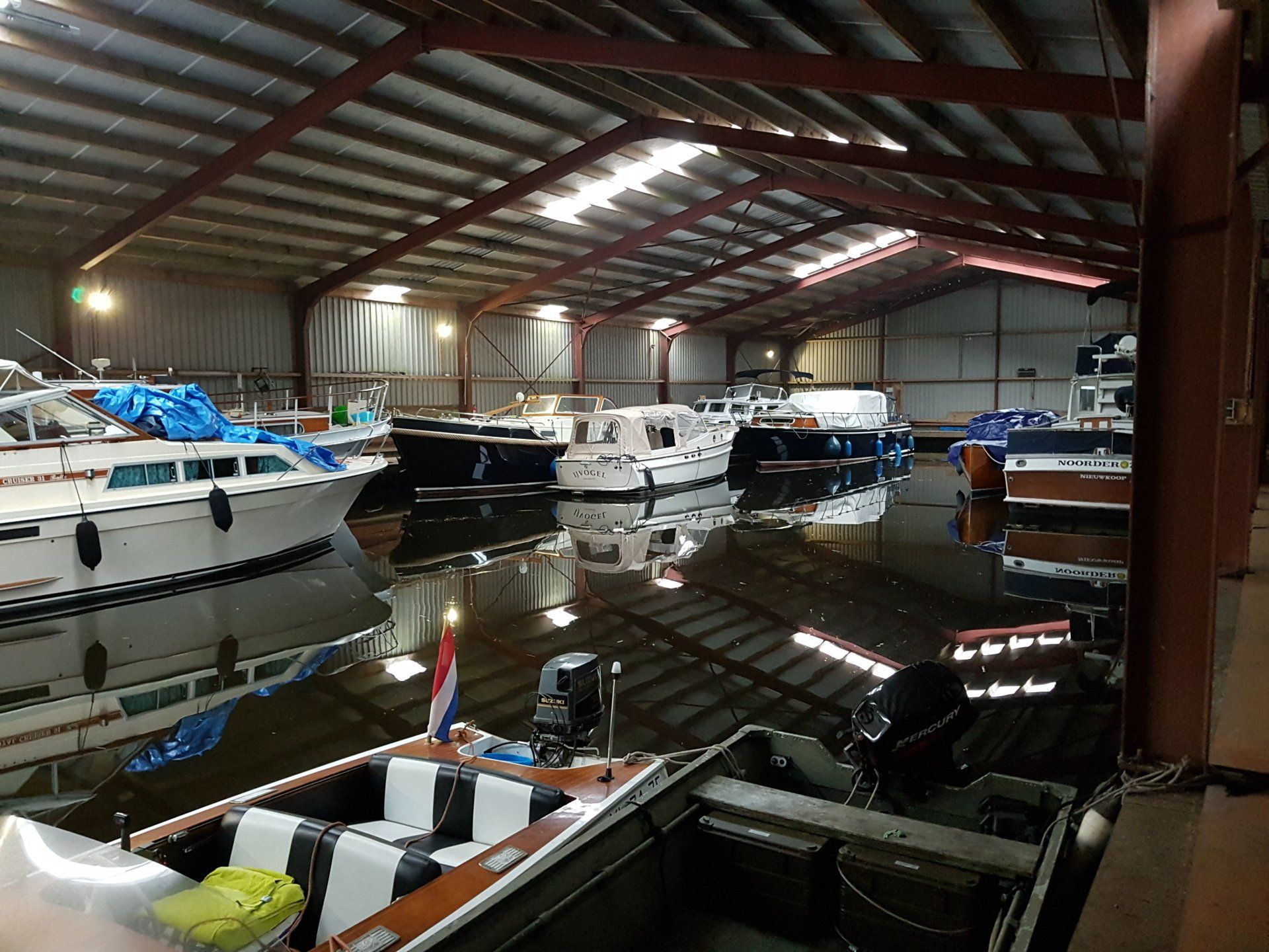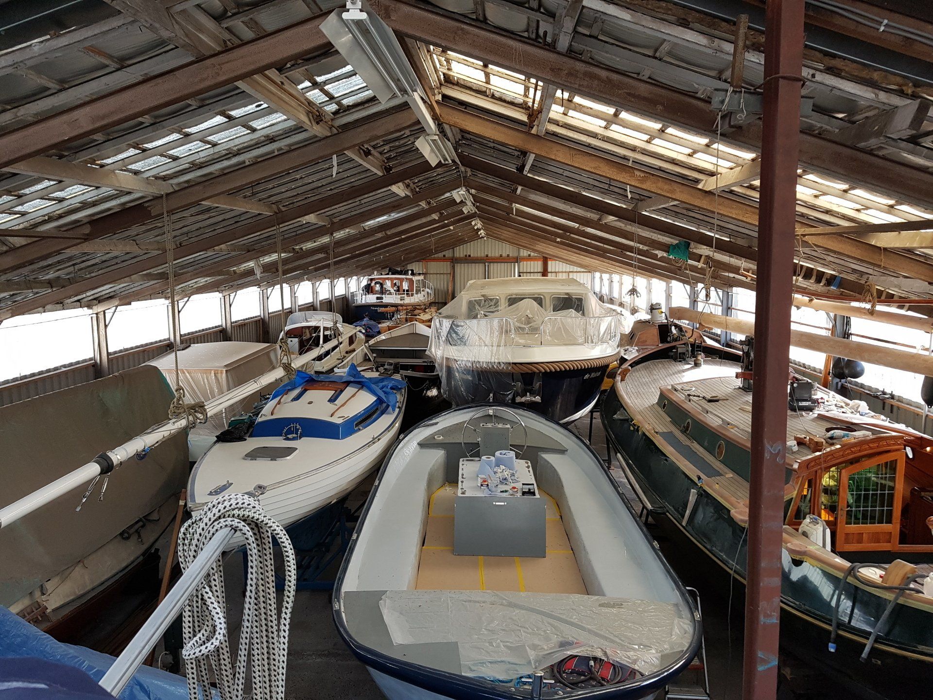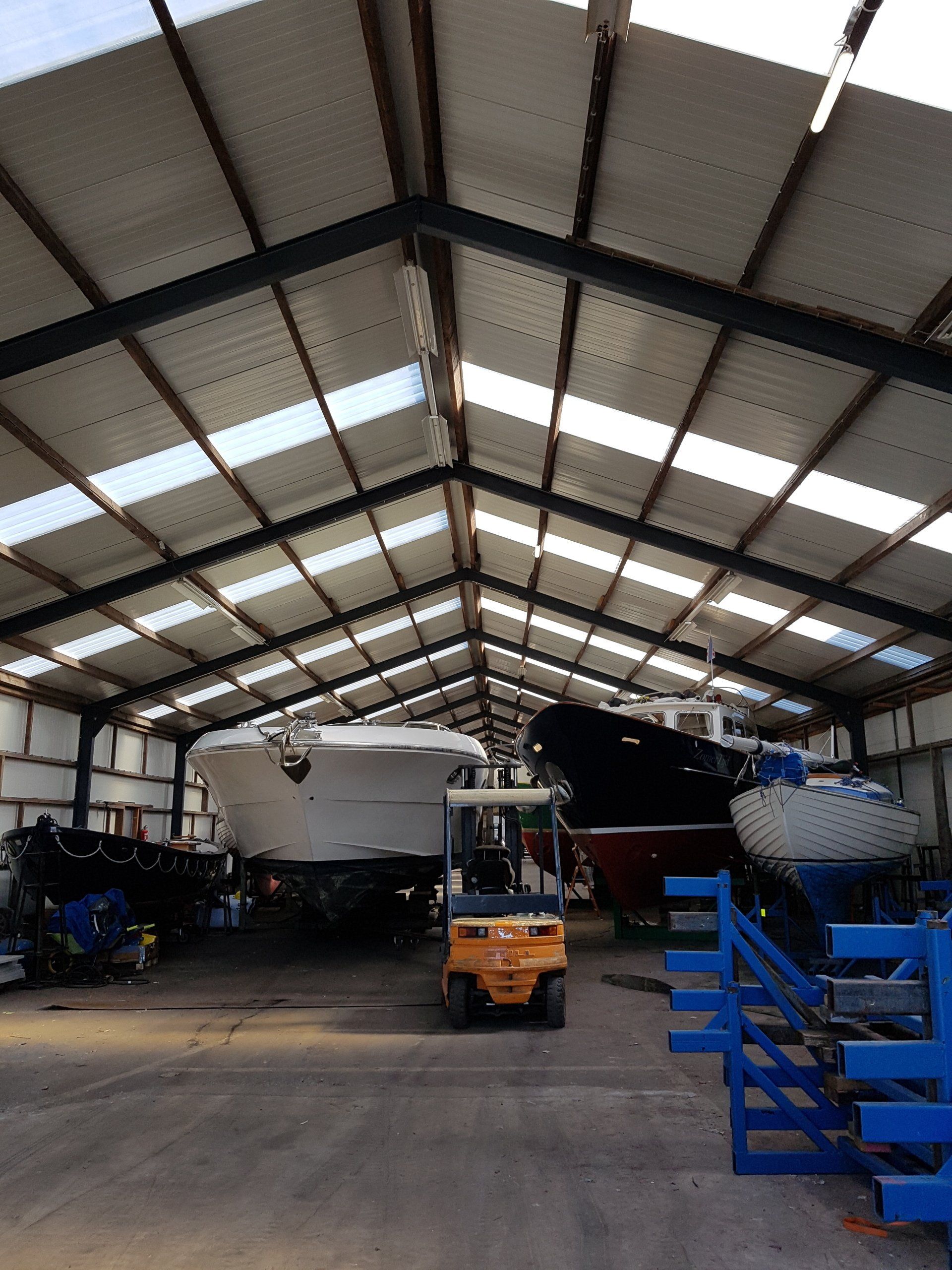 uw schip staat op een betonnen vloer. In overleg kan u hier zelf aan uw schip werken.