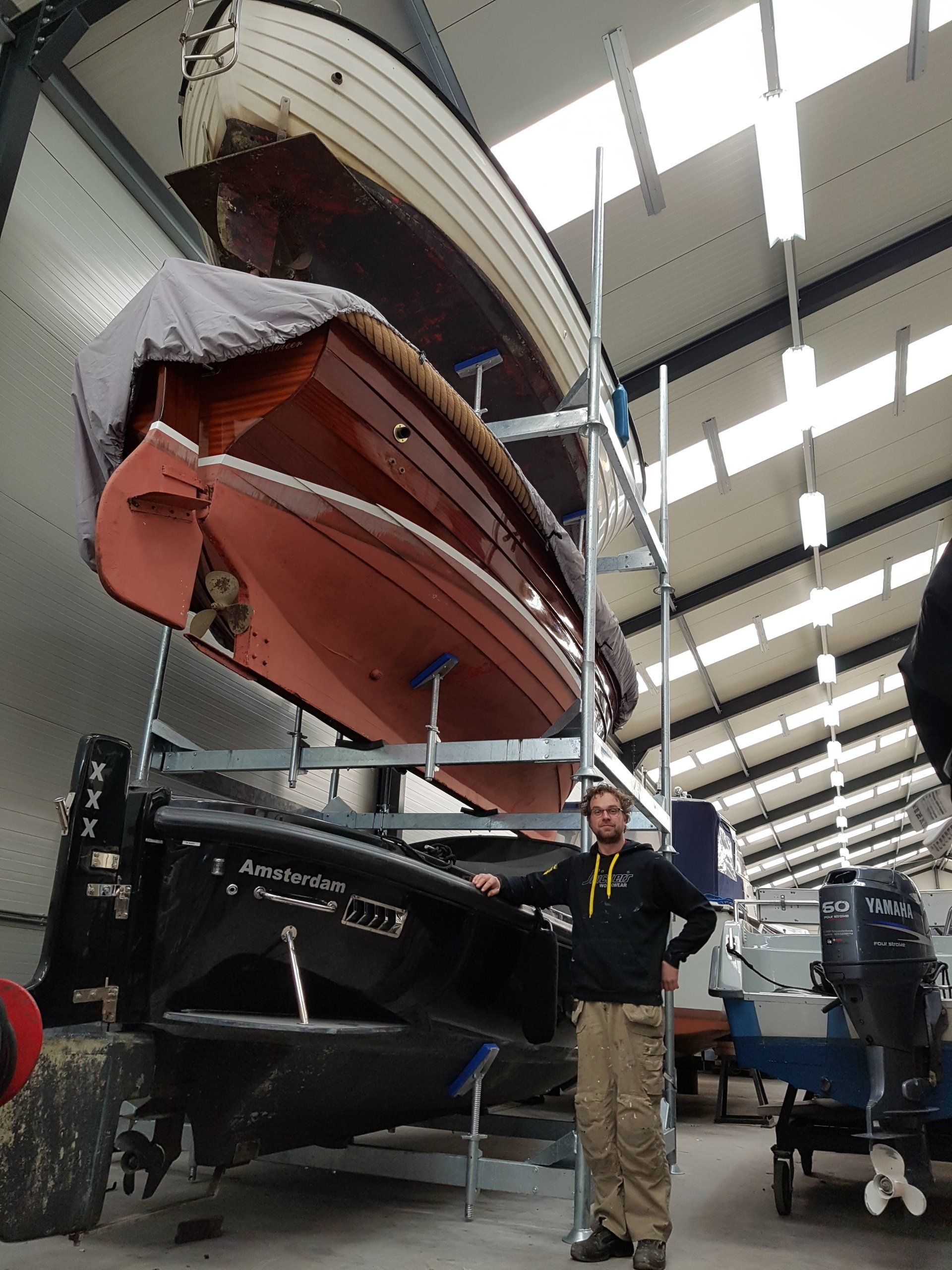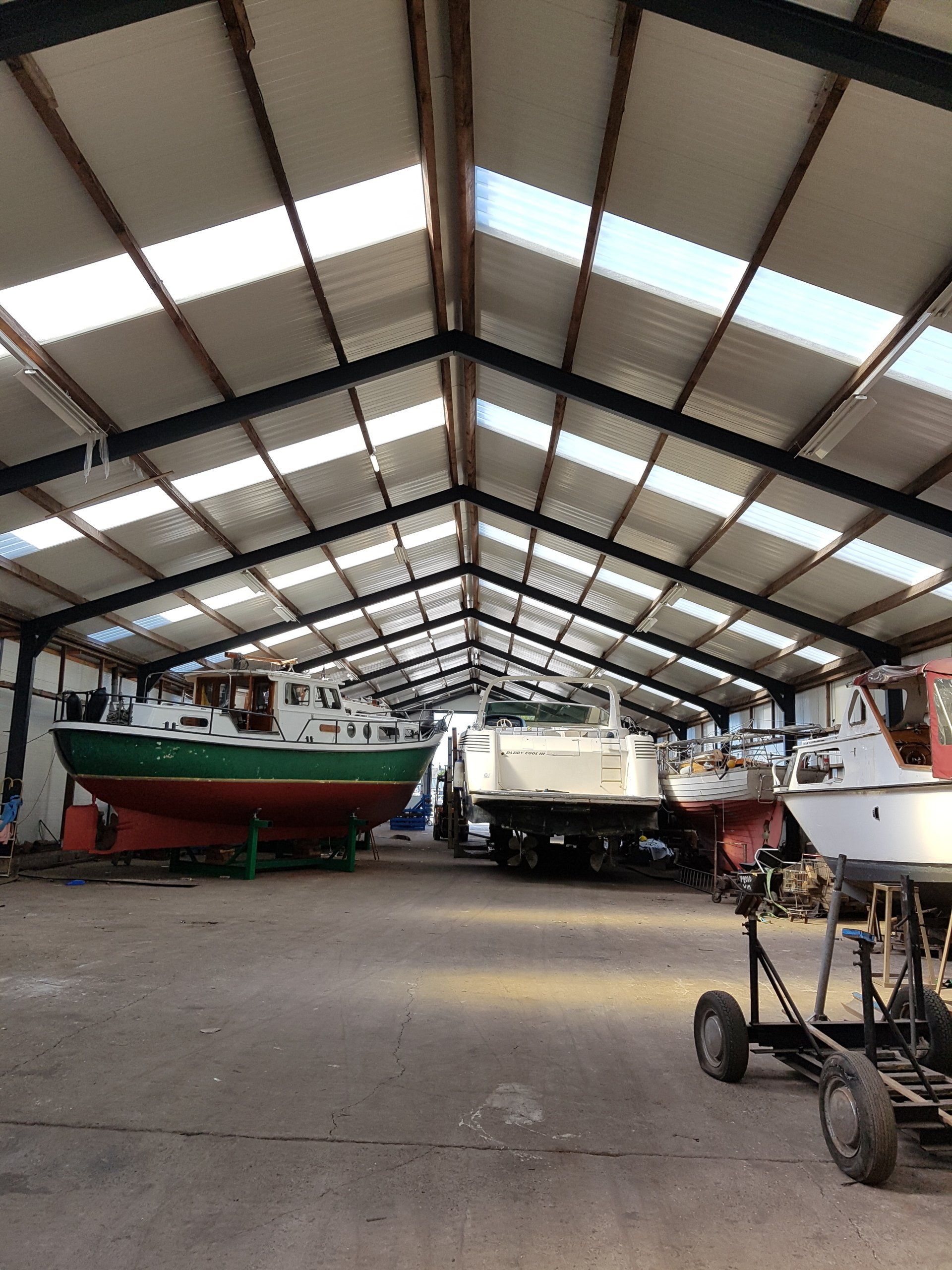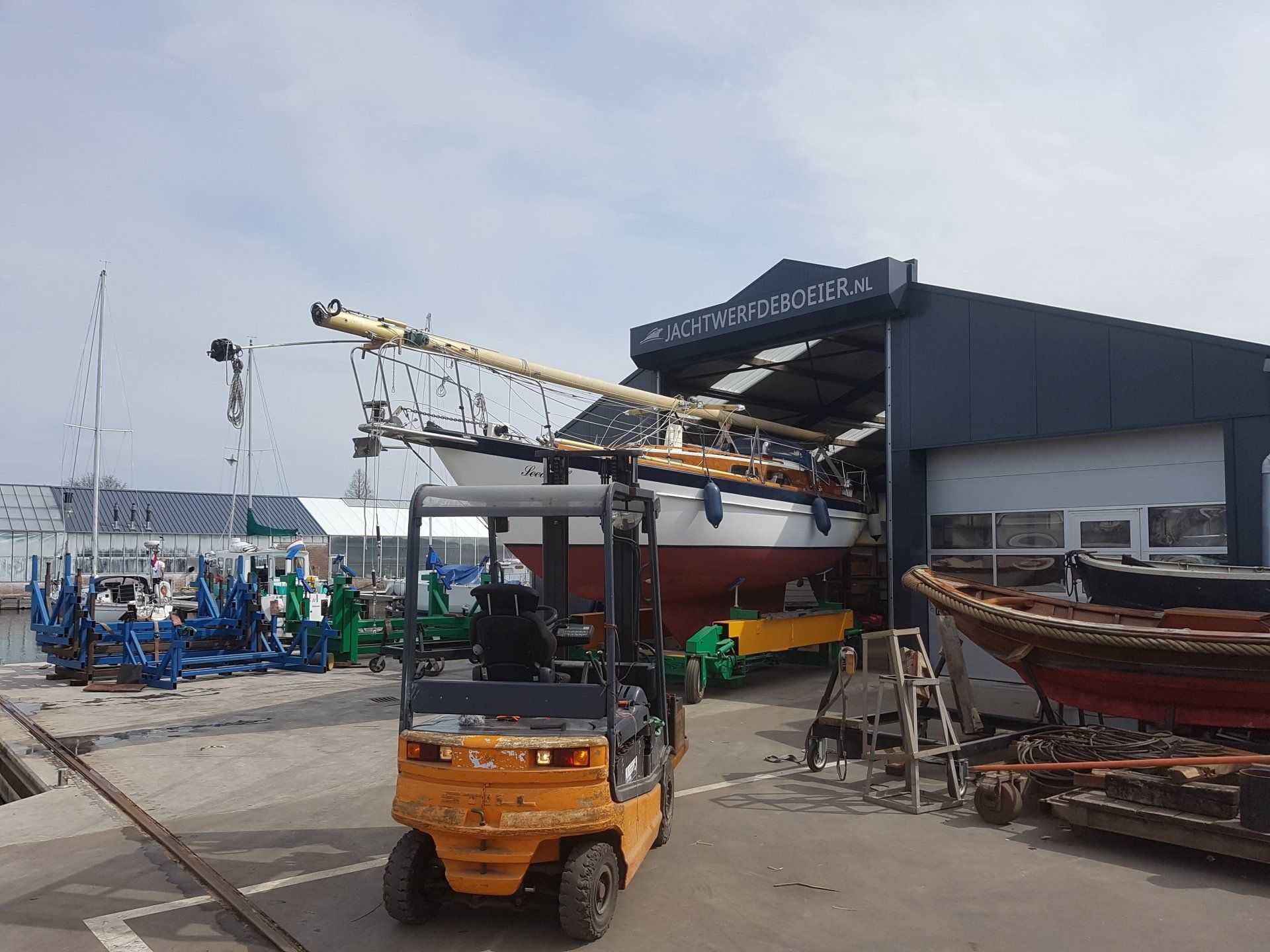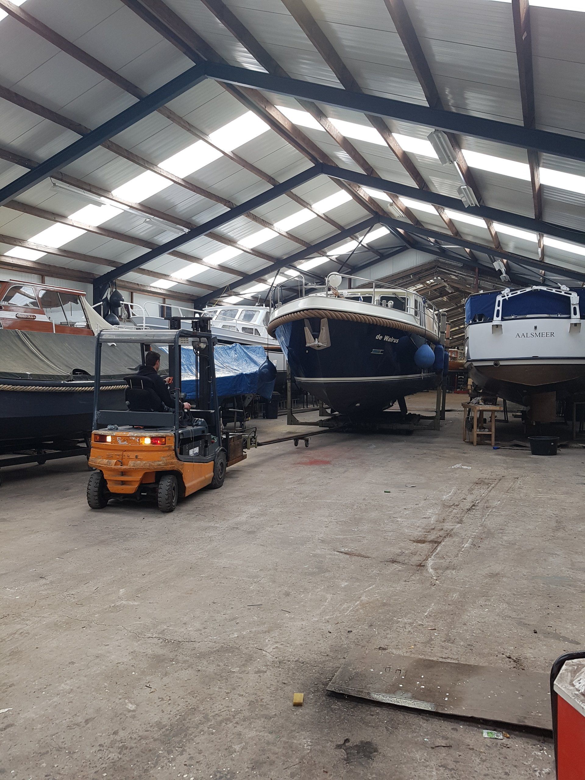 uw schip staat op een betonnen vloer. In overleg kan u hier zelf aan uw schip werken.